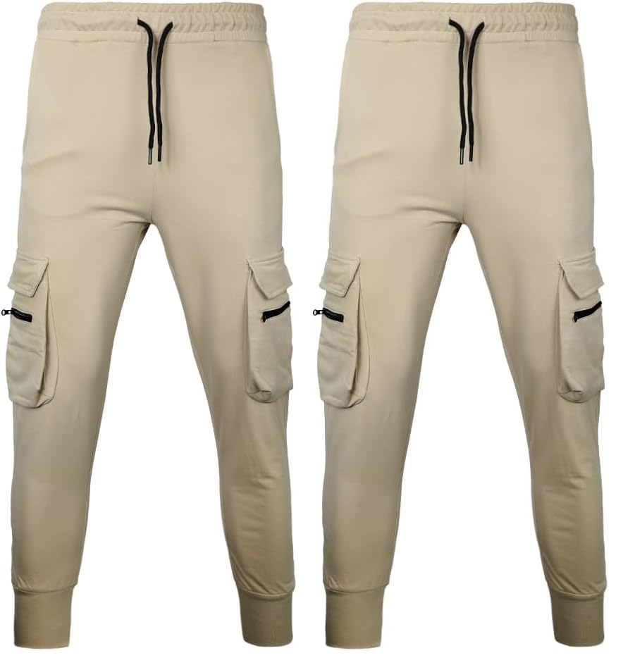 Activ - اكتيف بنطلون رياضي بسوستة وجيب بلون بيج، مقاس XL (عبوة من قطعتين)