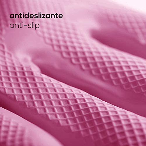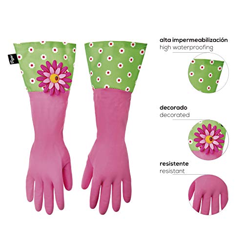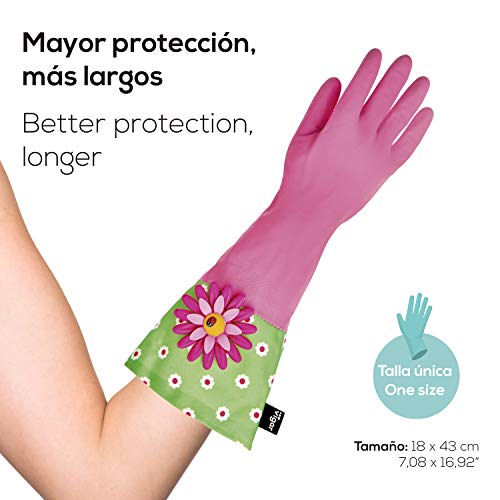 Addis - جوانتي من اللاتكس باللون البينك من فيجار لغسل الأطباق باسوار عريضة مزخرفة بالزهور من اديس، الطول 43 سم