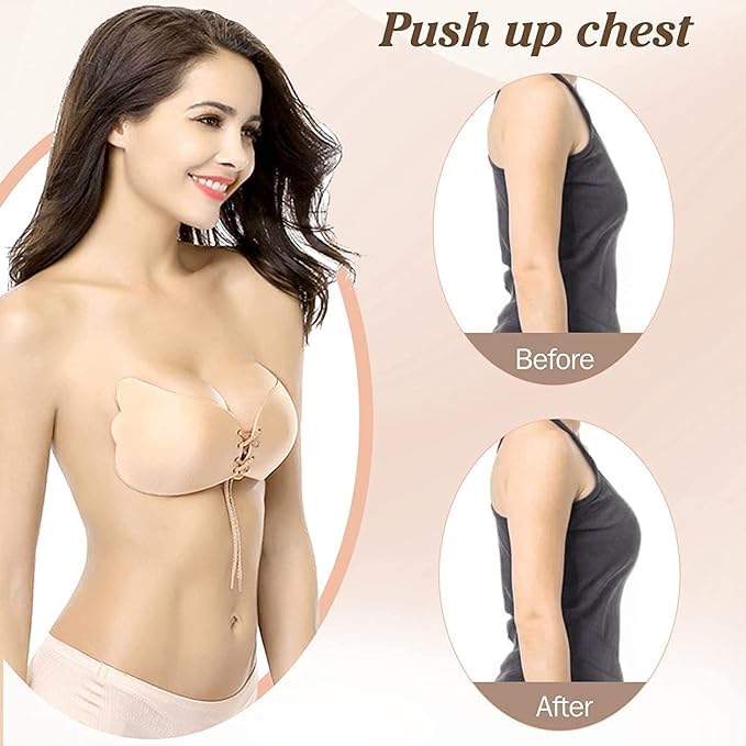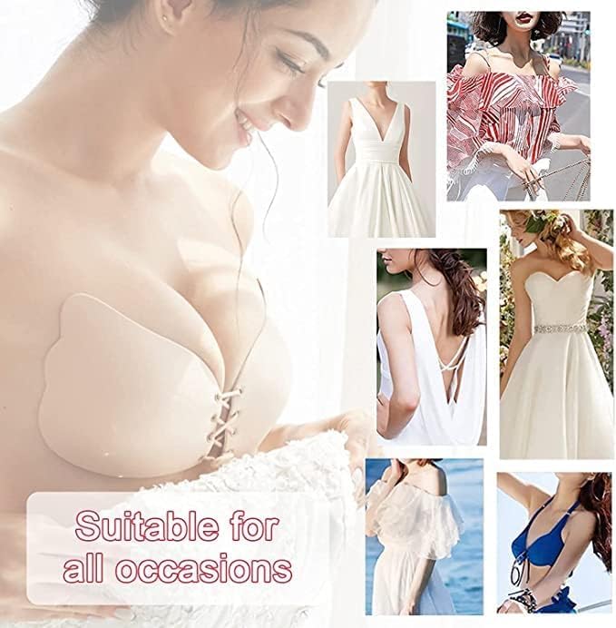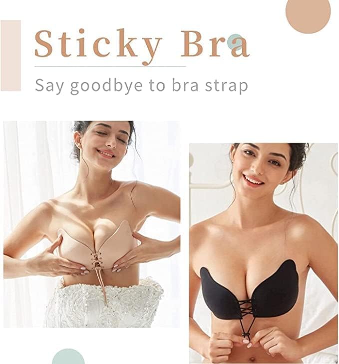 Generic - حمالة صدر بوش اب َيقة لاصقة بتصميم سادة للنساء بدون حمالات وبدون ظهر مصنوعة من السيليكون جيل