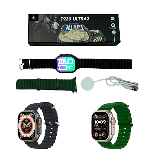 ADHOMAX - ساعة ذكية 2025 T930 الترا 3 ، تصميم أنيق 49 ملم، ان اف سي، شاشة HD لانهائية، متتبع اللياقة البدنية، معدل ضربات القلب، المكالمات، شحن لاسلكي، لـ IOS واندرويد للرجال والنساء من ادهوماكس (أواخضر زيتي)