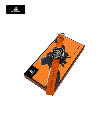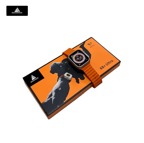 ADHOMAX - ساعة ذكية X8 بلس أنيقة سلسلة 8 مقاس 49 ملم بشاشة عالية الدقة HD من ادهوماكس بجهاز تتبع عن بعد وإجراء للمكالمات وشحن لاسلكي وتطبيق موبايل ويرفيت برو لنظام أندرويد وiOS للرجال والنساء (ذهبي/ 49 ملم/