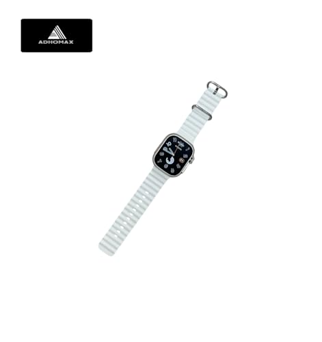 ADHOMAX - ساعة ذكية X8 الترا ماكس 49 ملم سلسلة 8 عالية الدقة HD بتصميم أنيق مع ميزة تتبع اللياقة البدنية، تدعم إجراء المكالمات والشحن اللاسلكي، متوافقة مع أنظمة IOS وأندرويد للرجال والنساء من ادهوماكس (أبيض)