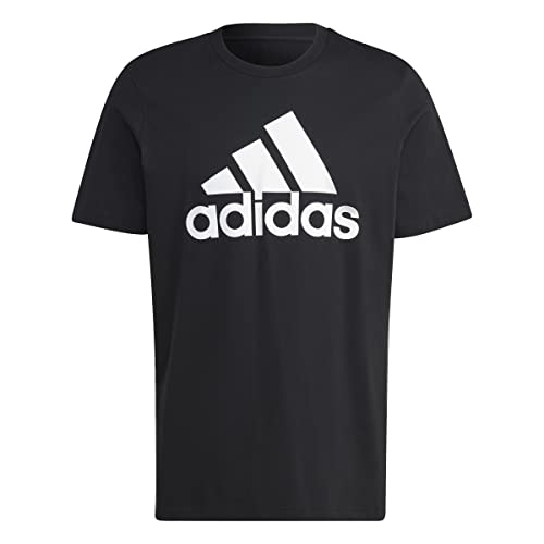 adidas - تي شيرت بطبقة جيرسي واحدة مزين بشعار كبير وأكمام قصيرة للرجال من اديداس، مناسب للجيم والتدريب
