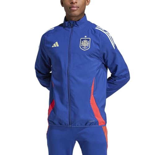 adidas - بدلة رياضية بتصميم خاص للاتحاد الإسباني لكرة القدم للرجال من اديداس، جاكيت مخصص للارتداء قبل المباريات (عبوة من قطعة واحدة)