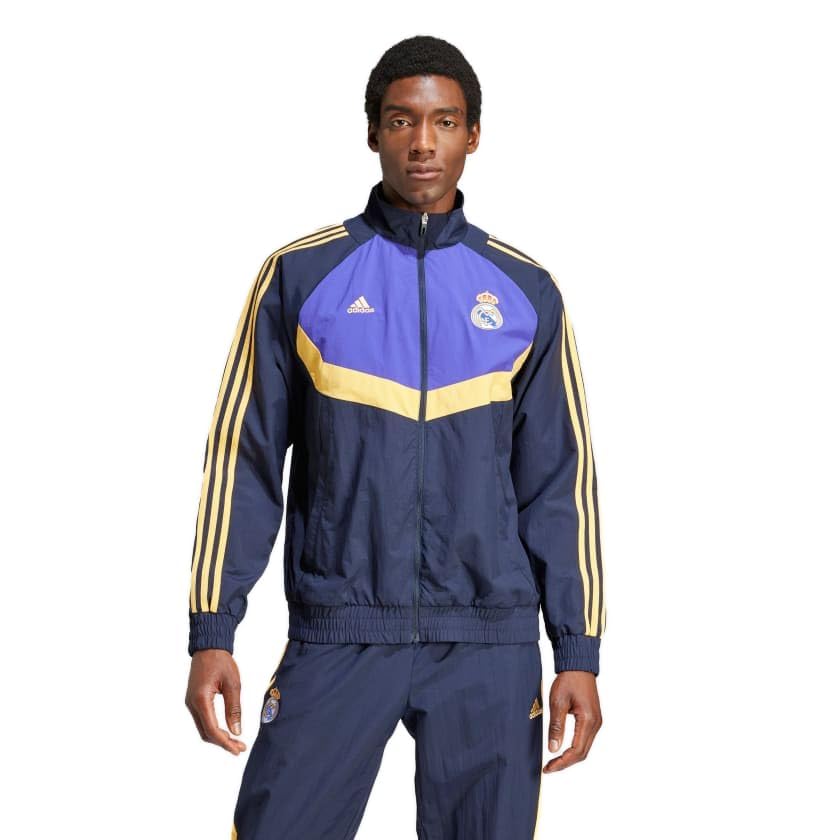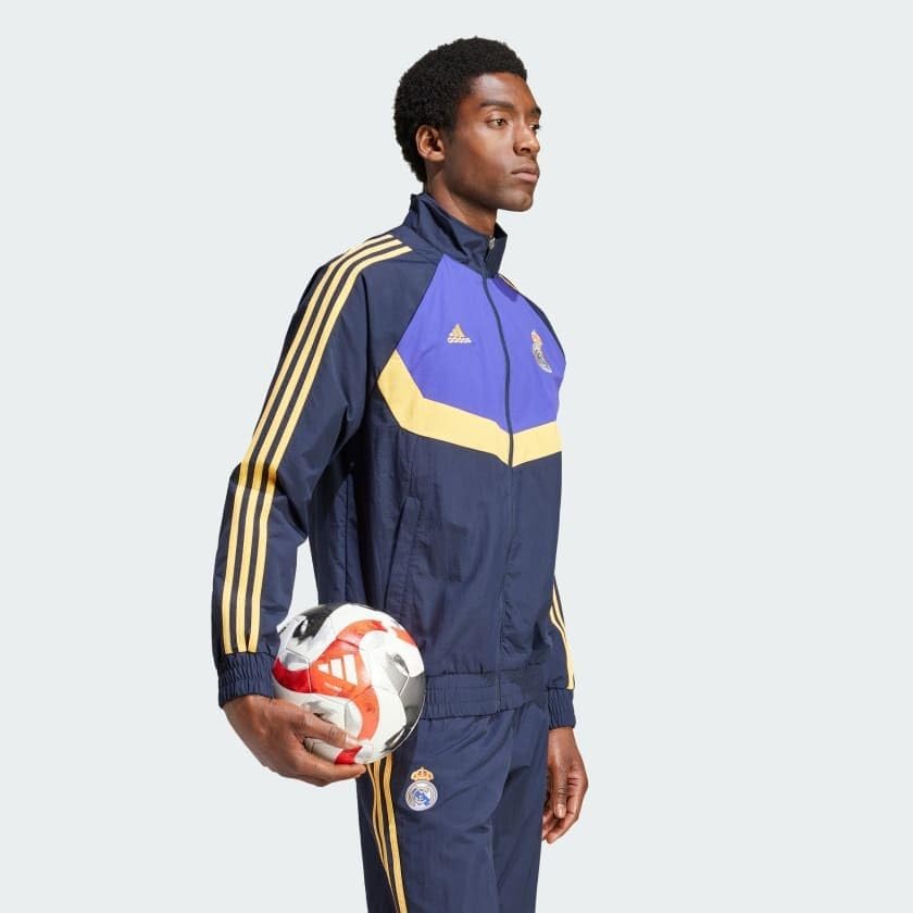 adidas - جاكيت منسوج مزين بشعار فريق ريال مدريد لكرة القدم للفصول الانتقالية للرجال من اديداس، (عبوة من قطعة واحدة)