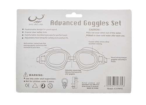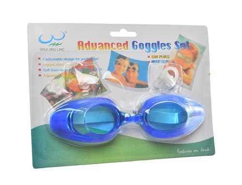 Generic - مجموعة نظارات سباحة متطورة قابلة للتعديل مع سدادات اذن - ازرق