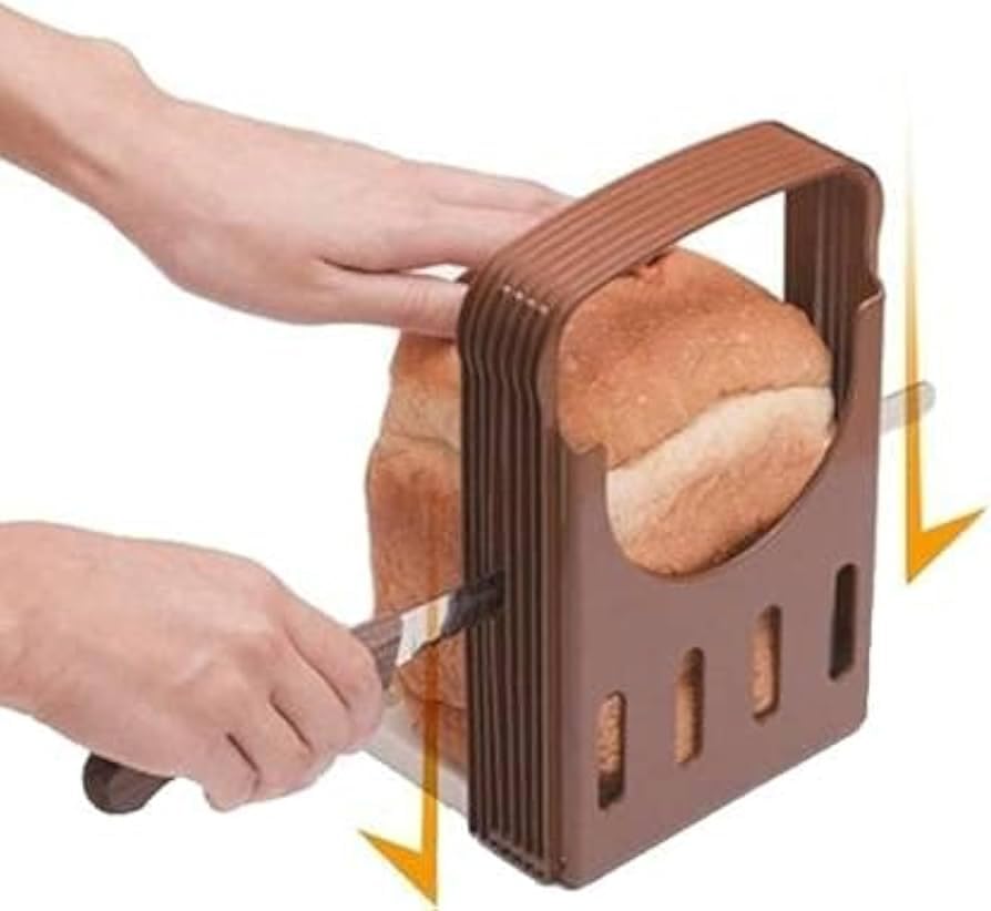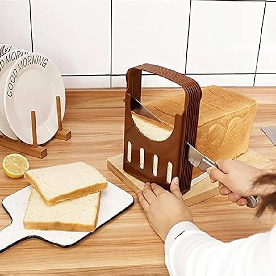 Generic - دليل تقطيع الخبز قابل للتعديل، قالب تقطيع توست قابل للطي مع 7 اعدادات للسمك، بني