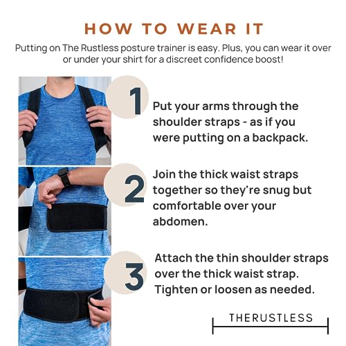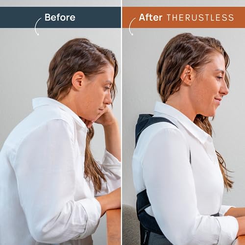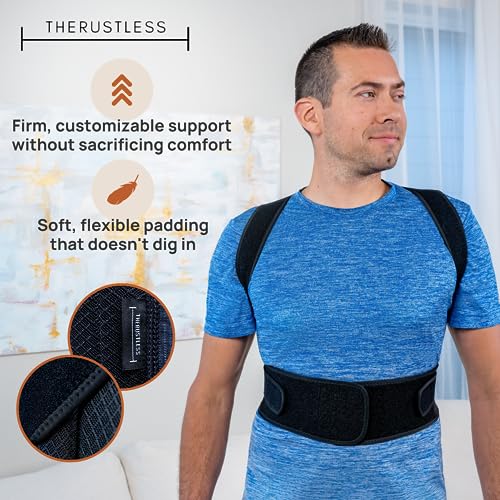 THERUSTLESS - مصحح وضعية الجسم قابل للتعديل للنساء والرجال، جهاز فرد الظهر دعامة للرقبة والكتف والظهر. تصحيح الحدب، مصحح العمود الفقري، تخفيف آلام الظهر. أسود، مقاس كبير L (84 - 94 سم)