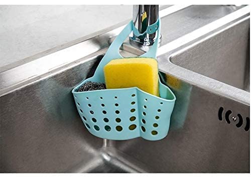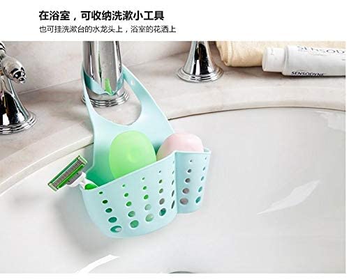 Other - سلة تخزين بازرار كبس قابلة للتعديل تعلق في صنبور المطبخ بلوحة لتصريف المياه من الاسفنج، أزرق فاتح