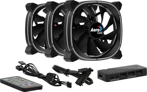 AeroCool - مروحة استرو 12 برو ايه ار جي بي مع موزع H66F وجهاز تحكم عن بعد بسرعة دوران 1000 دورة في الدقيقة، وتدفق بقوة 1.2 م2 من ايروكول، 3 × 120 ملم، أسود