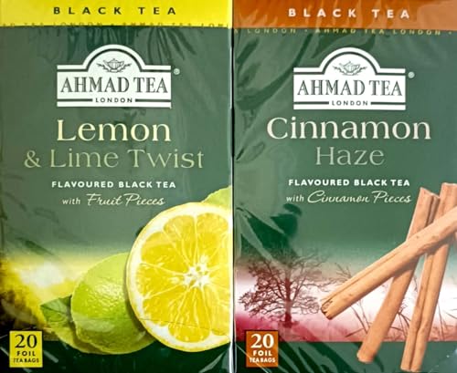 - شاي أسود بنكهة الفواكه والقرفة من احمد تي (20 كيس شاي من رقائق الألومنيوم + 20 كيس شاي فويل بالليمون)