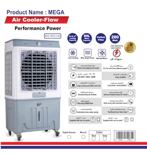 Generic - مبرد هواء، ميجا، خزان سعة 80 لتر، 280 وات