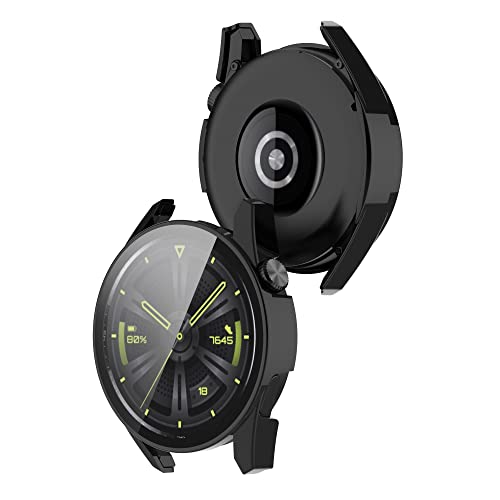 AISPORTS - جراب حماية ممتص للصدمات متوافق مع ساعة هواوي جي تي 3 46 ملم من اس سبورتس عبوتين، جراب من البولي كربونات الصلب HD شفاف من الزجاج المقوى مضاد للخدش بتغطية كاملة لساعة هواوي GT3 46 ملم