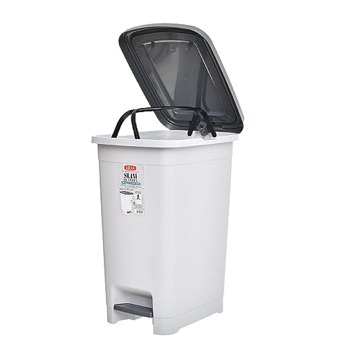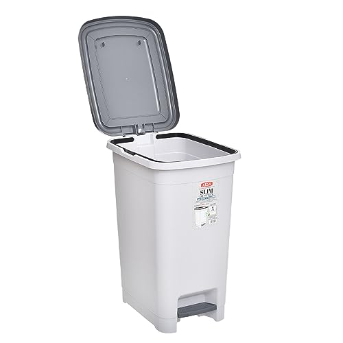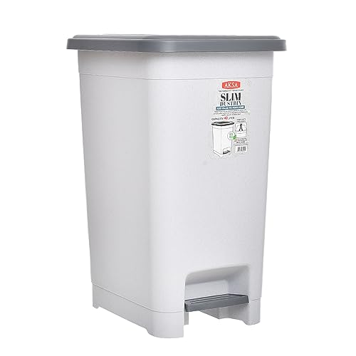 Aksa - سلة مهملات بلاستيك رفيعة بسعة 40 لتر من اكسا - لون رمادي منقط، يُفتح أعلى، يُفتح من أعلى