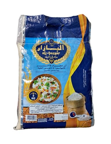Al-bazaar - أرز أبيض من البازار، حبوب عريضة، وزن 5 كيلوجرام