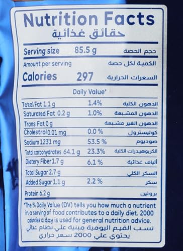- المعلومات الواردة أدناه هي لكل عبوة فقط.