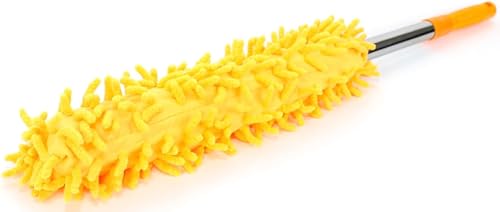 Al Hayah - فرشاة لتنظيف السيارة ميكروفايبر بيد طويلة قابلة للسحب- بني