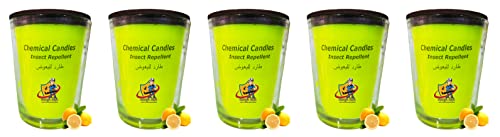 Al Rawda - شمع السترونيلا الطارد للذباب والناموس 235 جرام - مصنع من اجود انواع شمع الصويا المستورد - برائحة الليمون - اصفر - من شركة الروضة لمكافحة الحشرات - 5 شمعات