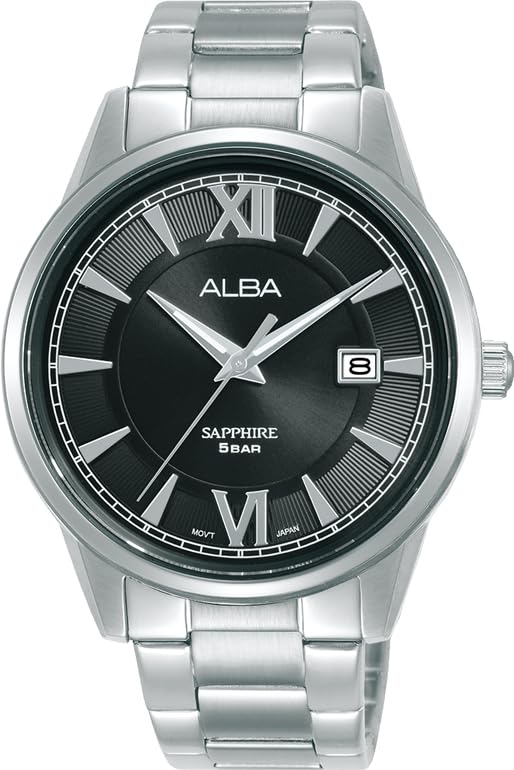 Alba - البا ساعة انالوج بعقارب ستانلس ستيل للرجال من برستيج AS9N75X، اسود/فضي