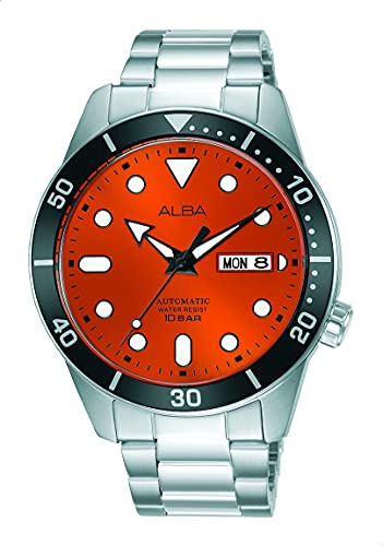 Alba - ساعة يد انالوج بعقارب اكتيف بسوار ستانلس ستيل للرجال من البا - فضي وبرتقالي
