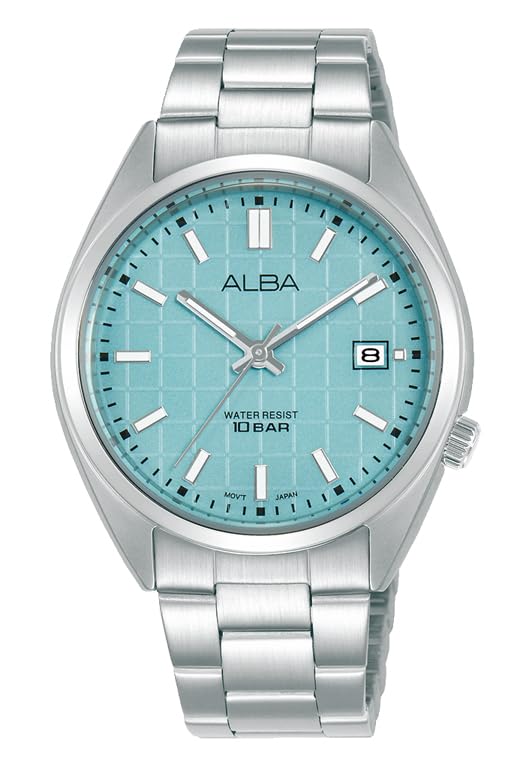 Alba - البا ساعة اكتيف من الستانلس ستيل بمينا منقوش بلون ازرق فاتح للنساء AG8M37X