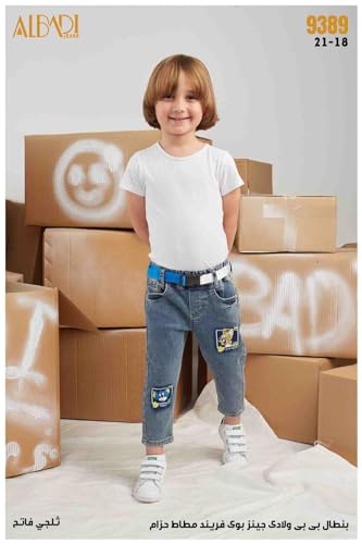 ALBADI - ALBADI JEANS COMPANY B - بنطال بى بى جينز بوى فريند مطاط حزام فئة الأولاد الرضع 6M ثلجي فاتح