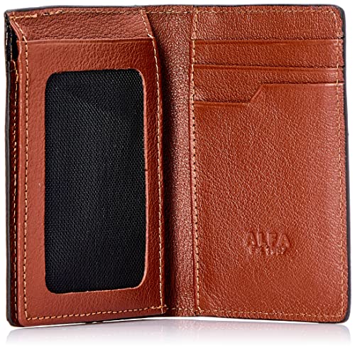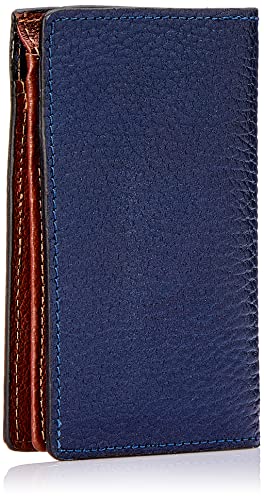 Alfa Leather Co. - محفظة جلد لونين مستطيلة بشعار امامي للرجال من الفا ليذر كو - كحلي وجملي