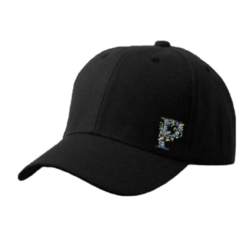 Generic - قبعة سوداء بتصميم حروف ابجدية مطبوعة بحروف زخرفية (P)