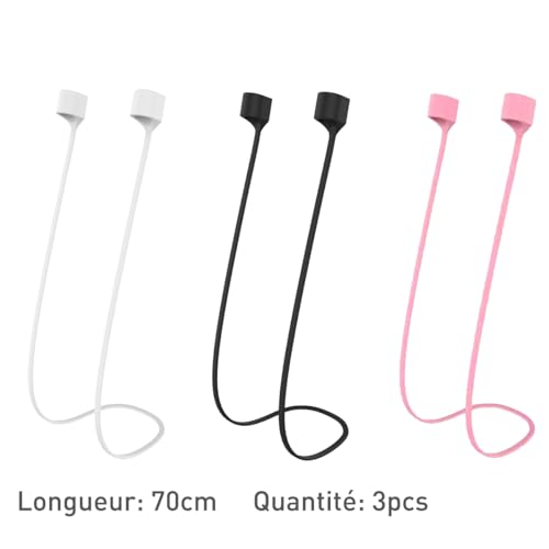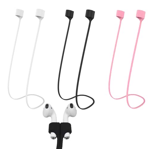 Alrens - كابل مغناطيسي لسماعات الأذن الرياضية، حزام مضاد للضياع لسماعات ايربودز 1/2/3، كابل حزام مغناطيسي مضاد للفقدان لسماعات ايربودز برو من السيليكون من الرينز (أسود، أبيض، وردي)