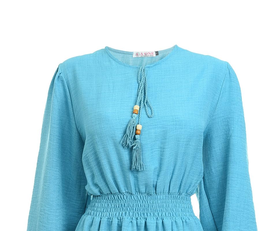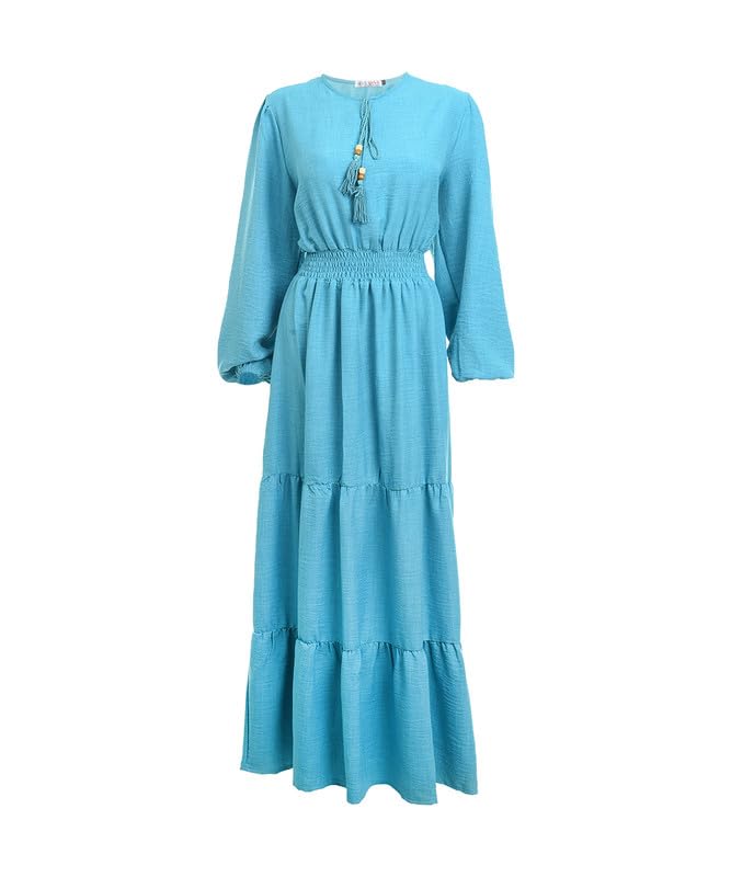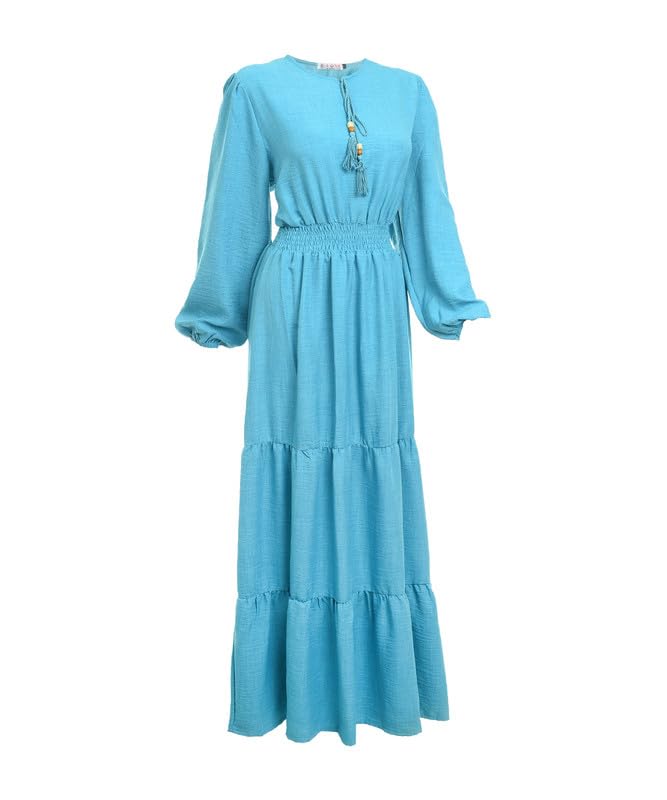 AMANY MAGDY - فستان سادة متعدد الطبقات بقصة فضفاضة بأكمام طويلة مع خصر محكم للنساء من أماني مجدي