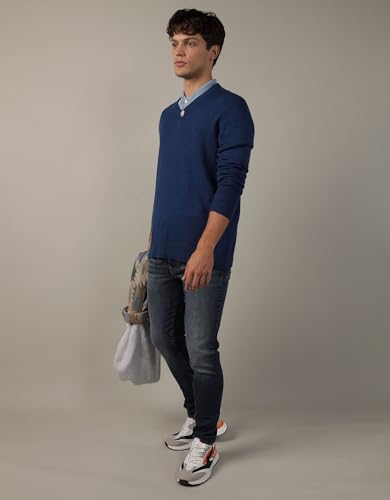 American Eagle - سترة بولوفر من أميريكان إيجل برقبة V للرجال، مصنوعة من مزيج القطن والصوف والأكريليك والنايلون