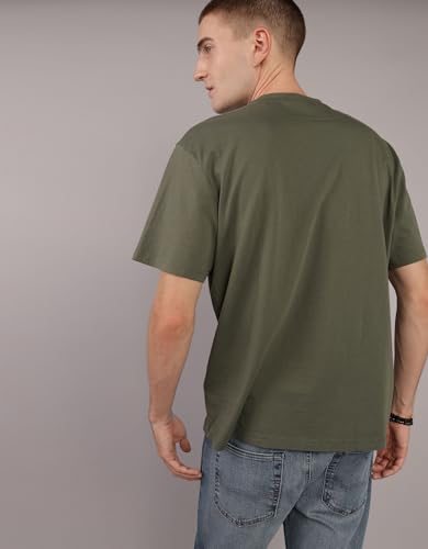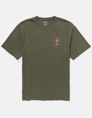 American Eagle - تيشرت مطرز بتصميم جرافيك للرجال من امريكان ايجل، لون زيتي