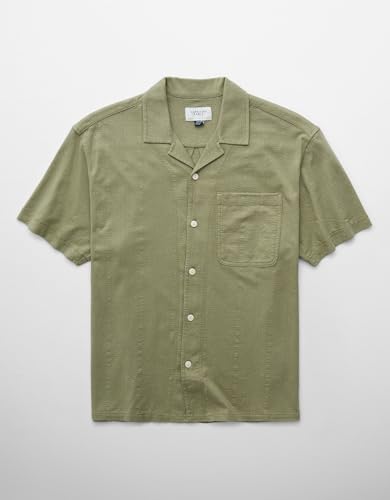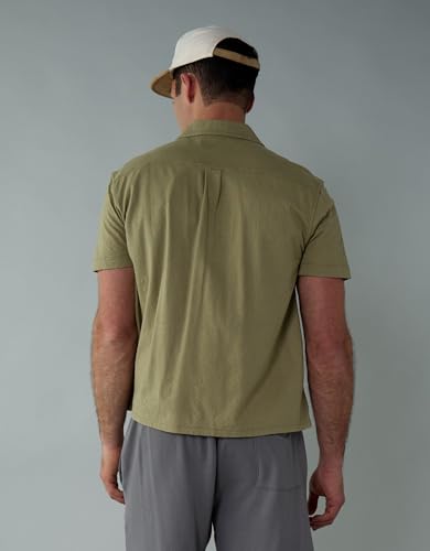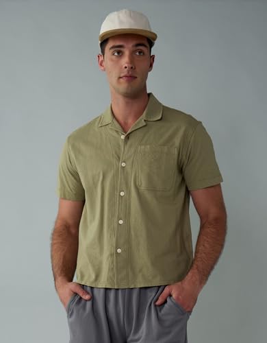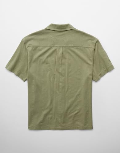 American Eagle - قميص بولو رجالي بنقشة جاكارد مزخرفة وأزرار أمامية من أمريكان إيجل
