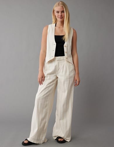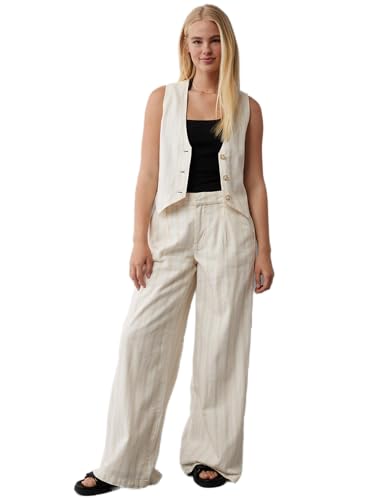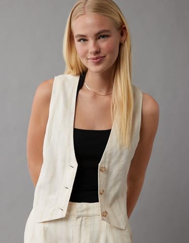 American Eagle - سترة صدرية مخططة من مزيج الكتان للنساء من اميريكان ايغل