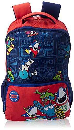 American Tourister - شنطة ظهر للمدرسة بجيب امامي ويد علوية للاطفال من امريكان توريستر Diddle - كحلي وبرتقالي