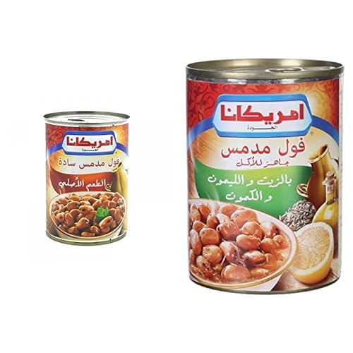 Americana - مجموعة فول مدمس سعة 400 جرام (المذاق الأصلي - الزيت والليمون والكمون - زيت الزيتون) مكونة من قطعة من أمريكانا