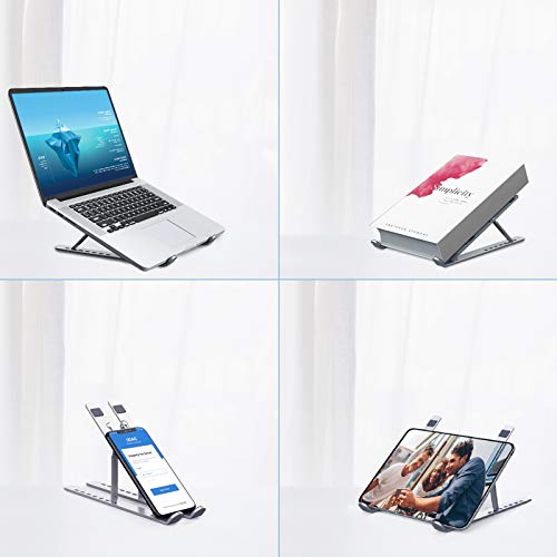 - متعدد الاستخدامات: تم تصميم حامل اللاب توب بعرض قابل للتعديل (من 4.5 سم إلى 19 سم) ليناسب جميع الأجهزة تقريبًا حتى مقاس 15.6 بوصة، متوافق بشكل متكامل مع أجهزة اللاب توب والتابلت وكيندل والكتب والهواتف.