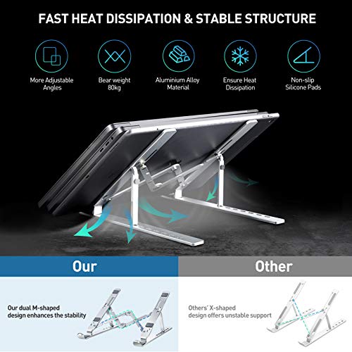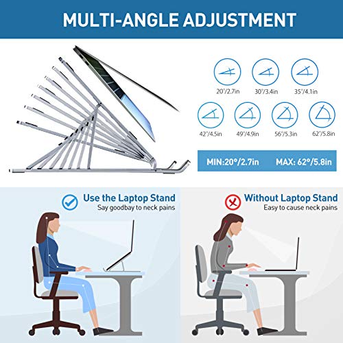 Amoner - حامل لاب توب قابل للتعديل من امونير مصنوع من الألومنيوم ومزود بتهوية للمكتب، متوافق مع جهاز ماك بوك اير برو واتش بي ولينوفو وديل والمزيد من أجهزة اللاب توبات والتابلت بمقاس اقل من 17 بوصة