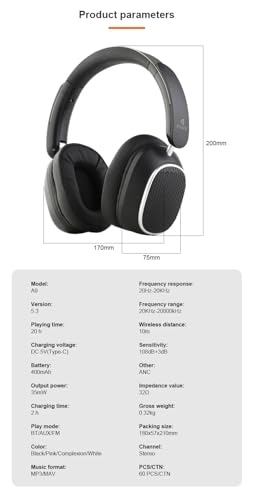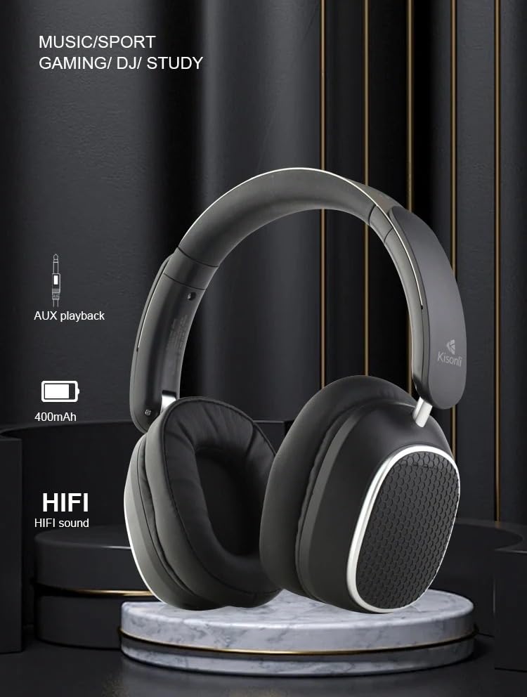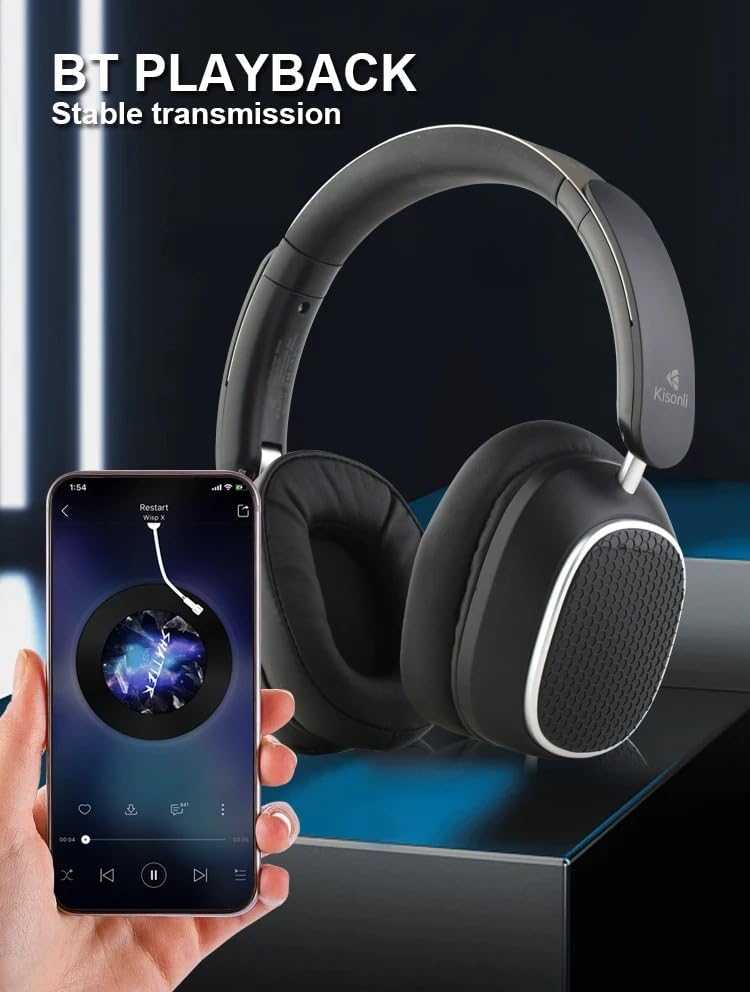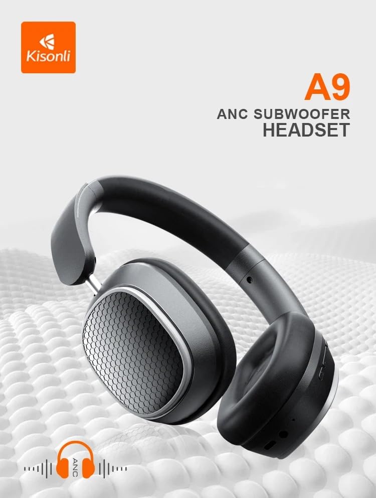Generic - سماعة رأس A9 بخاصية بلوتوث وتقنية إلغاء الضوضاء وصوت ستيريو قوي - بطارية 400 ميلي امبير في الساعة تدوم حتى 20 ساعة - تدعم التحكم الذكي (أسود)
