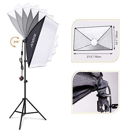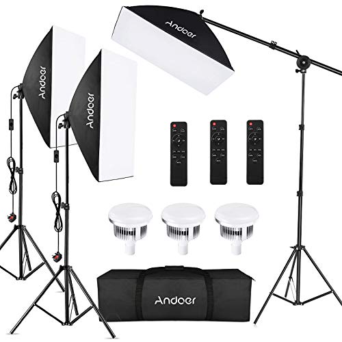 Andoer - طقم إضاءة سوفت بوكس لإضاءة استوديو التصوير الفوتوغرافي، لمبة حرارية بلونين 2800-5700 كالفن 150 وات مع ريموت، حامل إضاءة، ذراع بوم لتصوير بورتريه المنتجات من اندوير، 51 سم × 71 سم