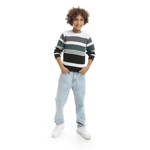 Andora - اندورا بلوفر مخطط برقبة دائرية ضيقة للاولاد - اسود_ 14