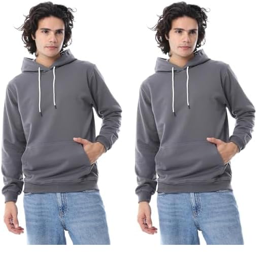 Andora - اندورا سويت شيرت سهل الارتداء برقبة بغطاء للرأس، لون رمادي غامق، مقاس 3XL، للرجال (عبوة من قطعتين)