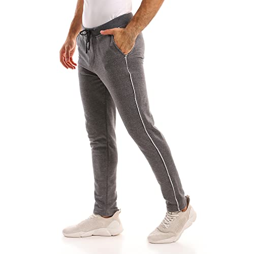Andora - بنطلون قطن كاجوال باستك عند الخصر وخط جانبي منقوش للرجال من اندورا