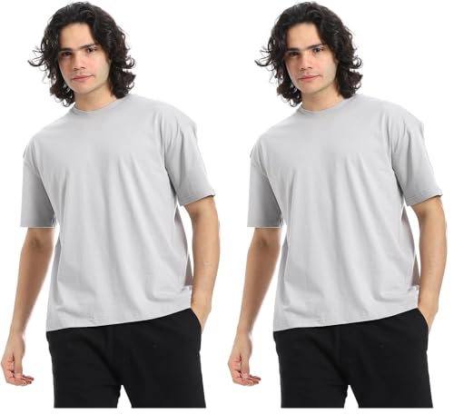 Andora - اندورا تيشيرت بيسيك بقصة عادية وطول الفخذين بمقاس كبير - رمادي-XL (عبوة من قطعتين)