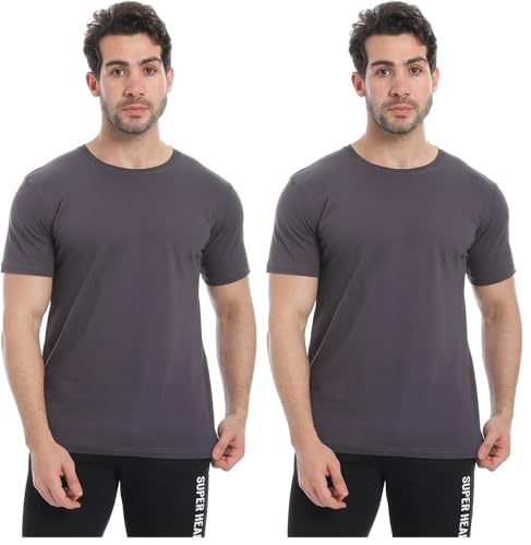 Andora - تيشرت نصف كم بنمط سادة من اندورا، رمادي غامق، 4 اكس لارج (عبوة من قطعتين)