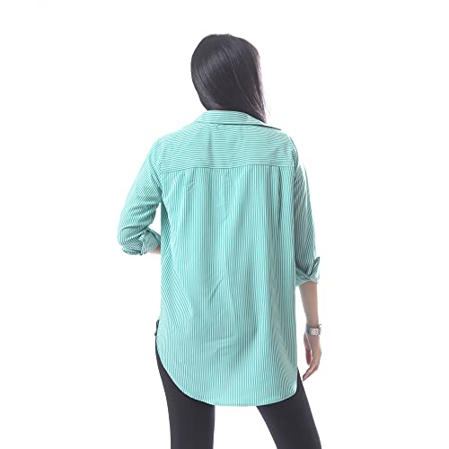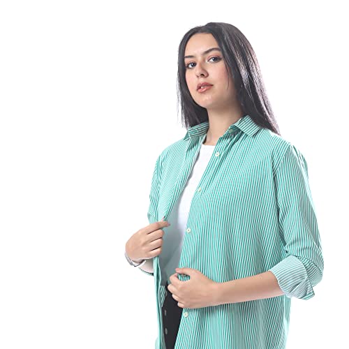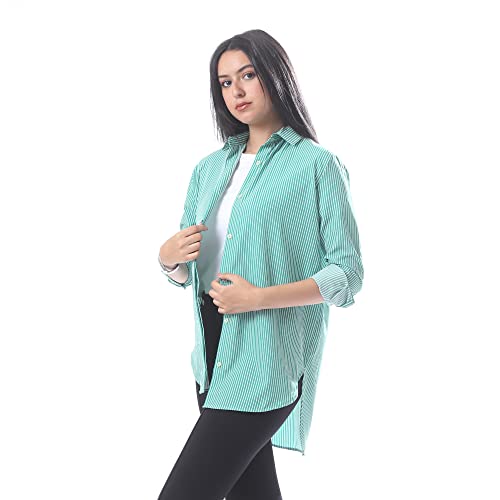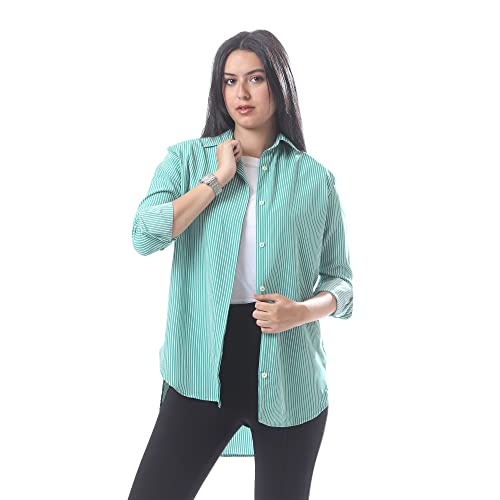 Andora - قميص اساسي مخطط منقوش بازرار امامية - اخضر وابيض، مقاس 5XL, متعدد الألوان, 5XL، من اندورا، للنساء