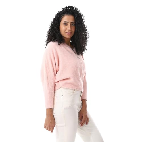 Andora - كنزة بولوفر من أندورا بياقة باند للنساء، تصميم فضفاض وأكمام طويلة، مصنوعة من الاكريليك، مقاس متوسط