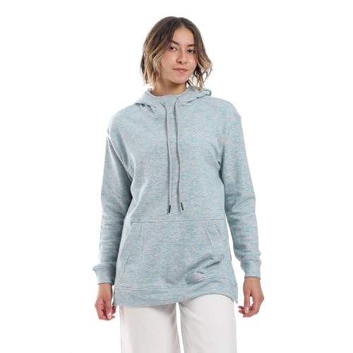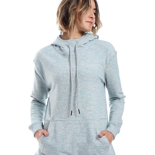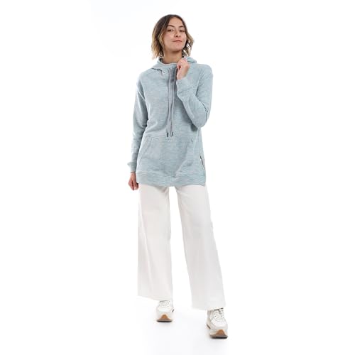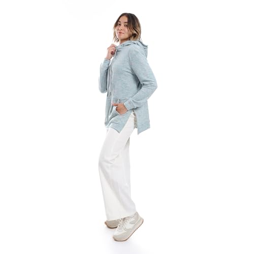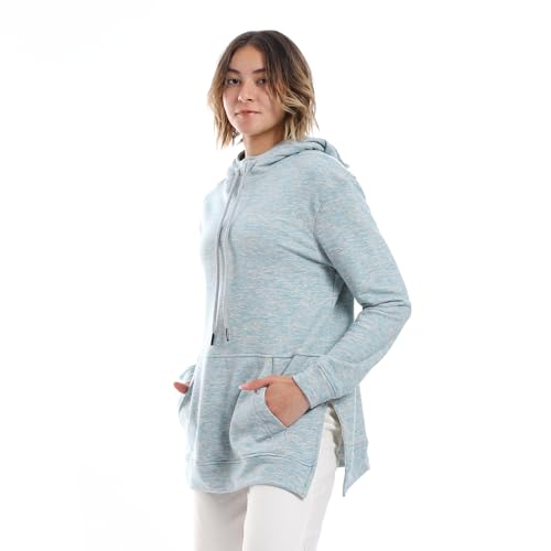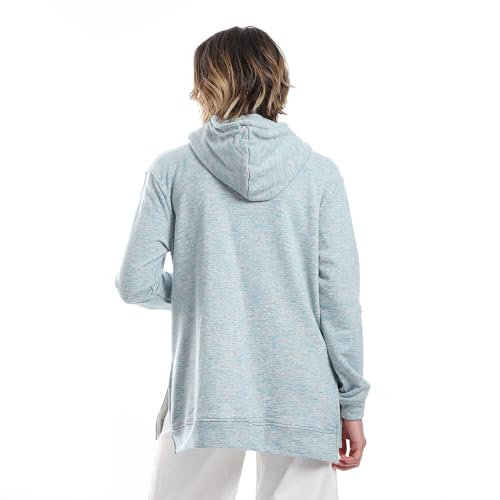 Andora - سويت شيرت بغطاء للرأس وجيوب متصلة بنمط ذاتي - تركواز ورمادي - مقاس 5XL، للنساء
