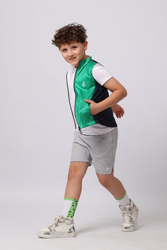 ANJA - فيست بدون اكمام للاولاد من انجا بلون اخضر مع لمسات جانبية سوداء - تصميم رياضي خفيف الوزن