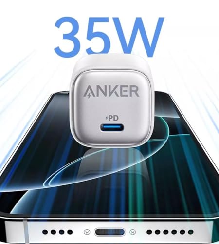Anker - شاحن من أنكر بمنفذ USB بقدرة 35 واط متوافق مع آيفون 15 و14 و13 و12 وسامسونج S24 وS23 مع تقنية GaN والشحن السريع